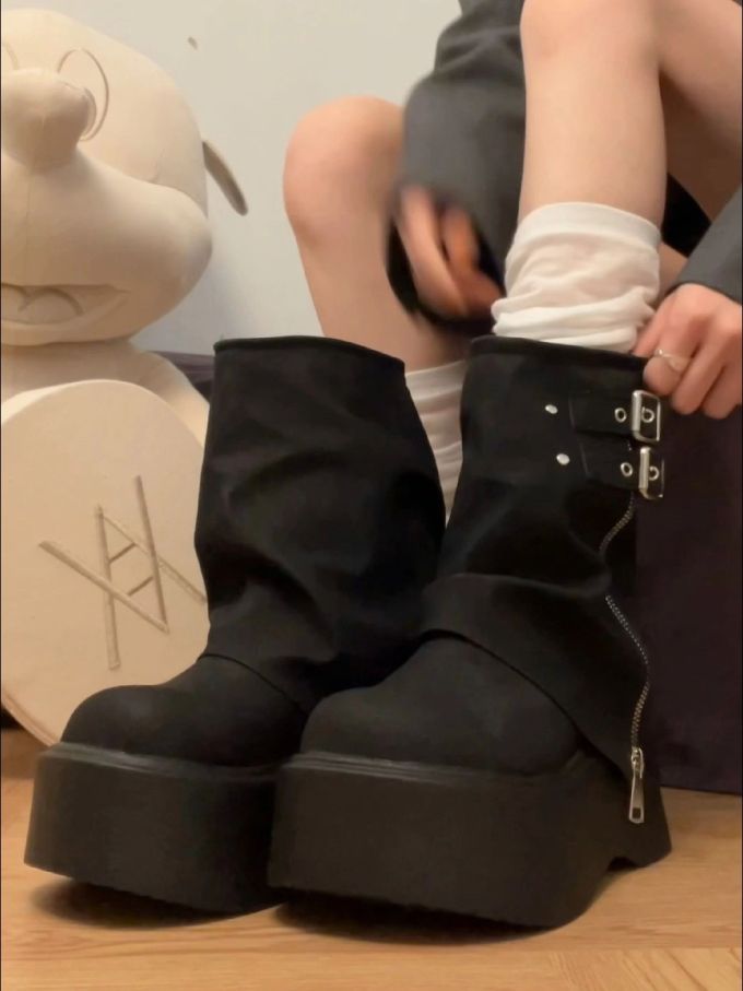 厚底 圆头 袢扣 皮革