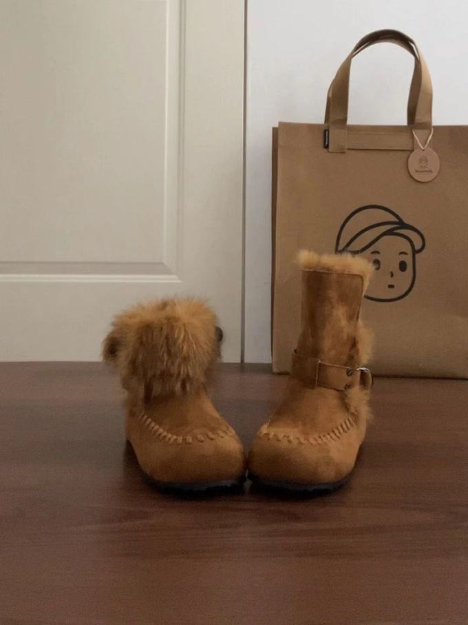 陨石色 咖啡褐色 可可奶油 圆头 绒毛/绒面
