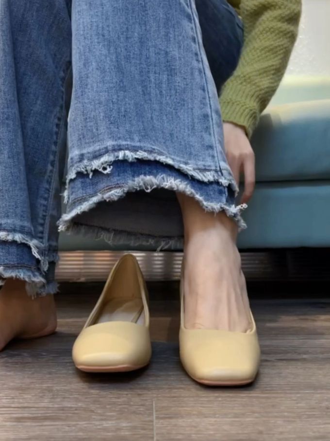 粗跟 低跟 圆头 低帮 袢扣 浅口鞋 皮革