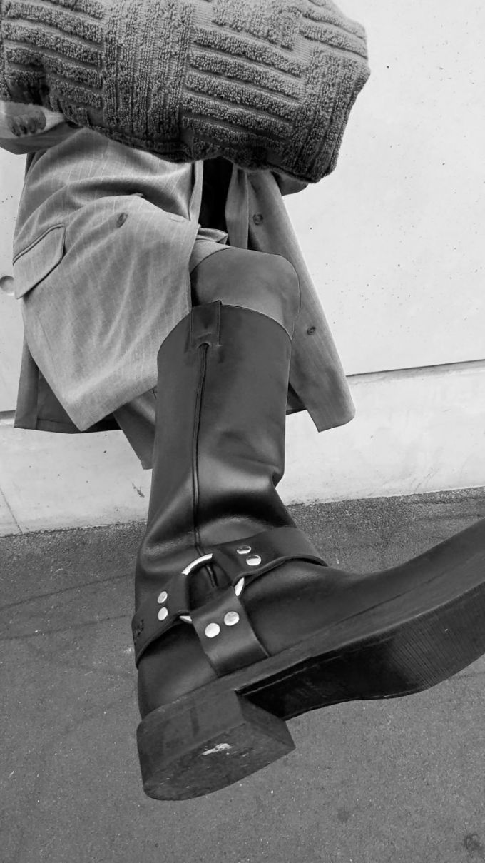 粗跟 低跟 圆头 拉链 袢扣 中筒 皮革