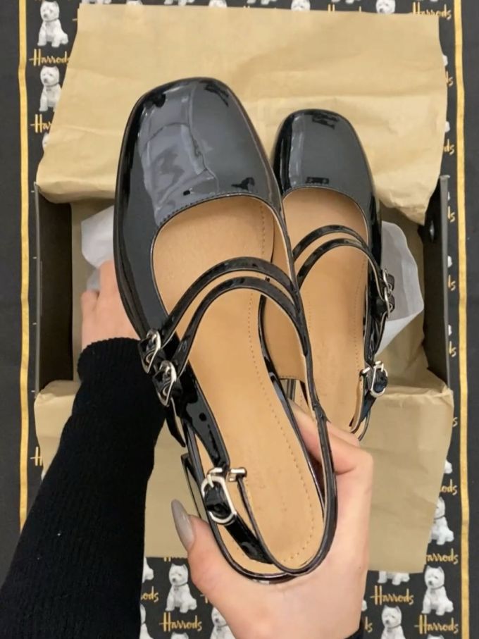 平底 方头 低帮 袢扣 浅口鞋 皮革