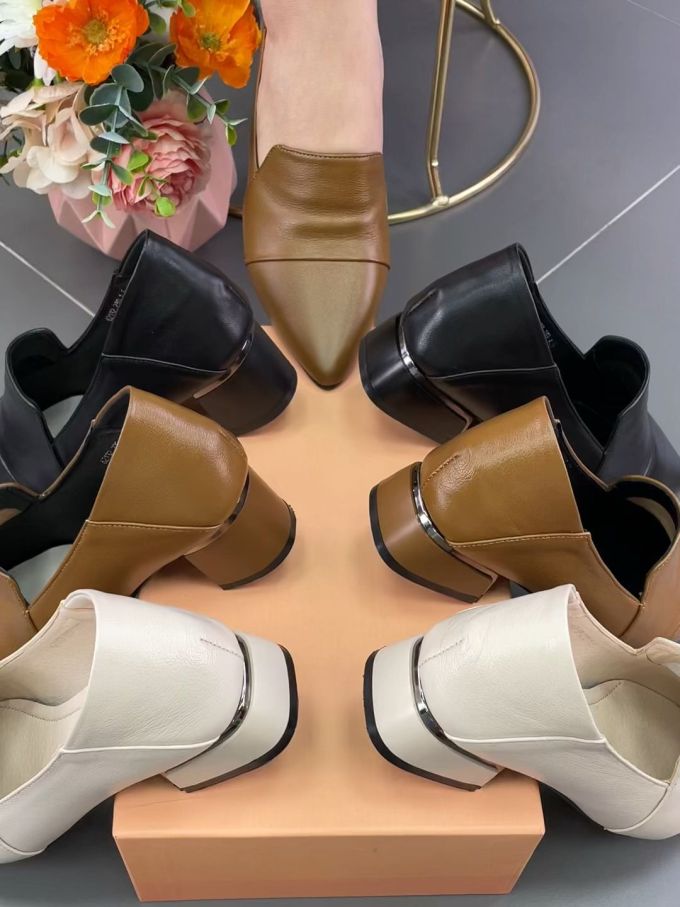 粗跟 低跟 圆头 低帮 一脚蹬 深口鞋 皮革