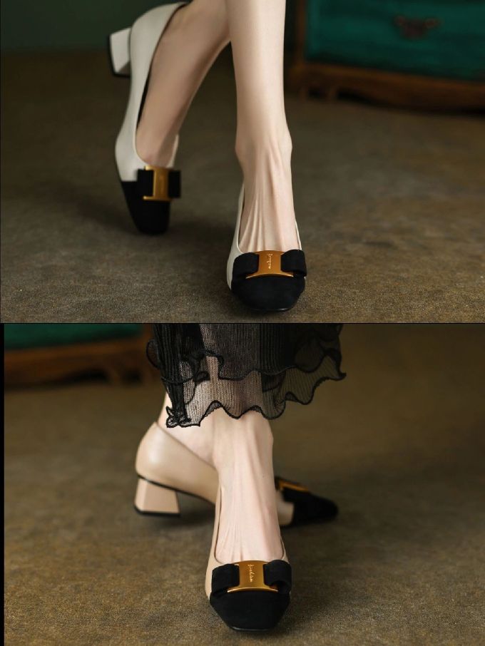 粗跟 高跟 圆头 低帮 袢扣 中口鞋 皮革