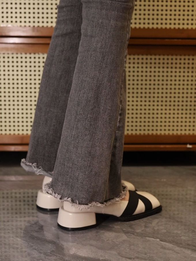 粗跟 低跟 圆头 低帮 一脚蹬 深口鞋 皮革