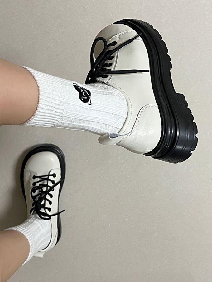 厚底 圆头 低帮 系带 深口鞋 皮革