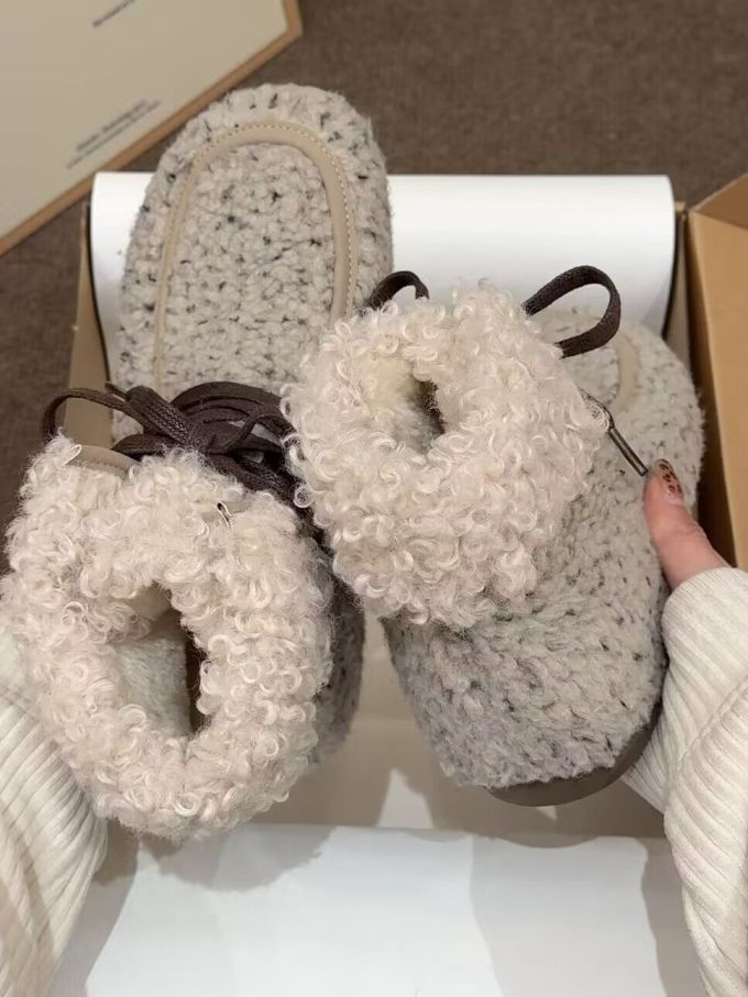 厚底 圆头 一脚蹬 深口鞋 绒毛/绒面